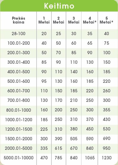 Prasitęsti garantiją galima nuo +1 iki *+5 m. (Max. pratęstos garantijos laikotarpis + gamintojo garantija yra 7 m.)
