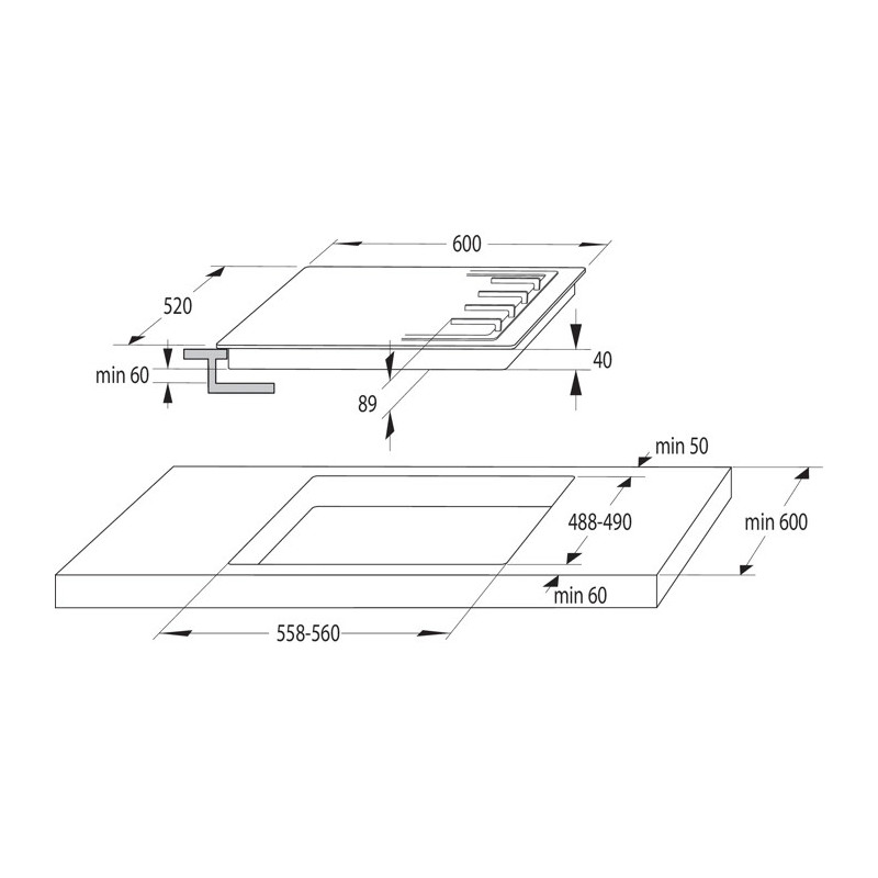 Įmontuojama 60 cm pločio dujinė kaitlentė