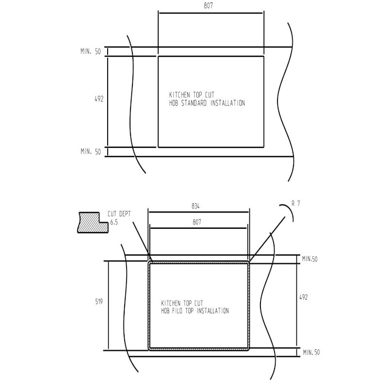 Montuojamas ant stalviršio gartraukis su indukcine kaitlente, tinkamas *ventiliacinio arba *recirkuliacinio oro ištraukimui (*reikia atitinkamo priedo)