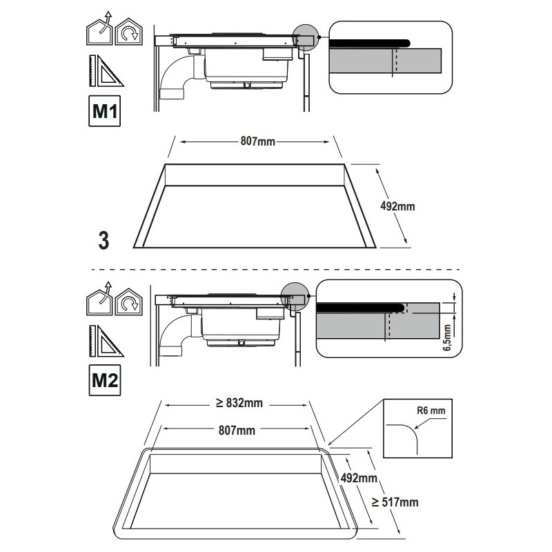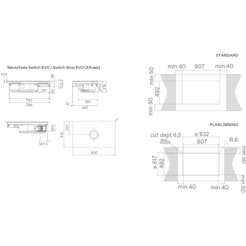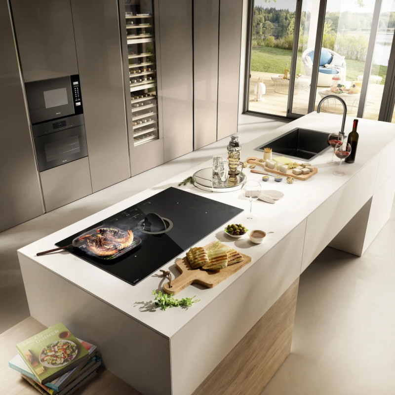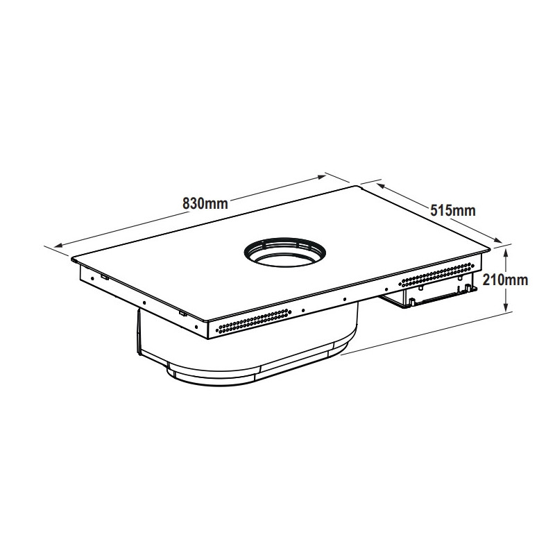Montuojamas ant stalviršio gartraukis su indukcine kaitlente, tinkamas ventiliacinio arba *recirkuliacinio oro ištraukimui (*reikia atitinkamo priedo)