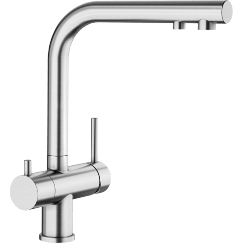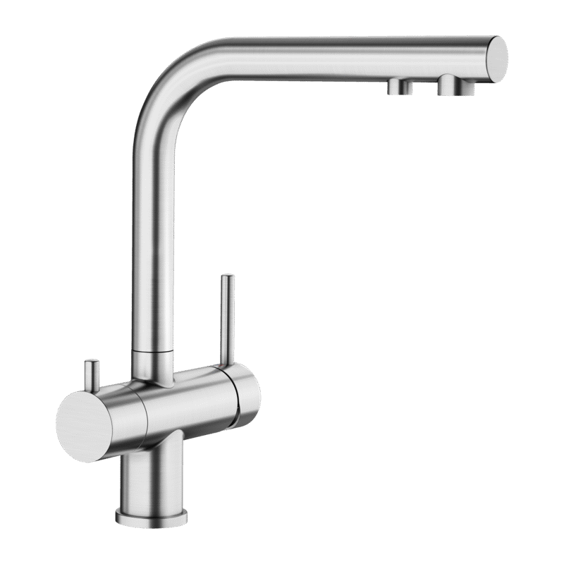 Patogus 3-1 maišytuvas su šalto ir šilto vandens svirtimi dešinėje ir filtruoto vandens svirtimi kairėje