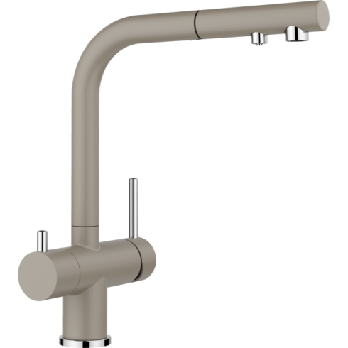 Patogus 3-1 maišytuvas su šalto ir šilto vandens svirtimi dešinėje ir filtruoto vandens svirtimi kairėje
