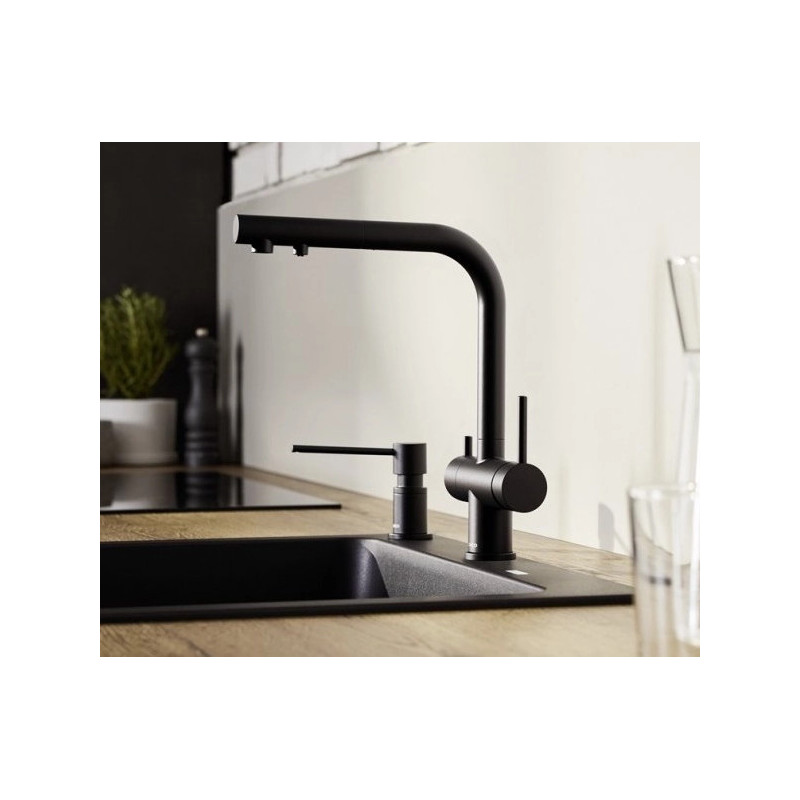 Patogus 3-1 maišytuvas su šalto ir šilto vandens svirtimi dešinėje ir filtruoto vandens svirtimi kairėje