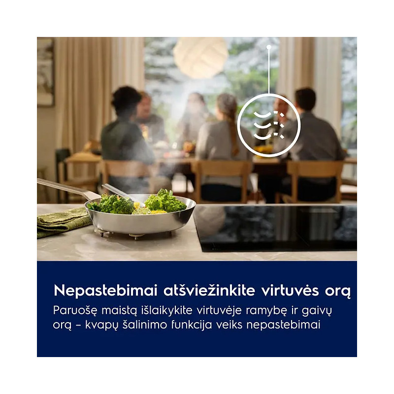 „AutoSense“ sensorius - gartraukis automatiškai pajunta garus, riebalus ir kvapus virtuvėje, intuityviai nustatydamas ventiliatoriaus galią, kad greitai išvalytų orą.