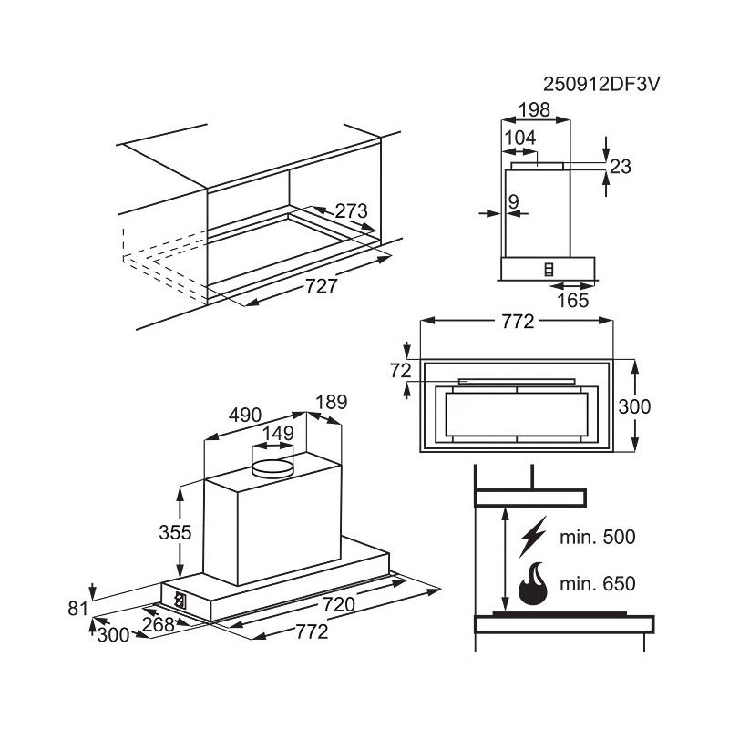 900 serijos montuojamas į spintelę gartraukis (paslepiamas) Electrolux LFG818K