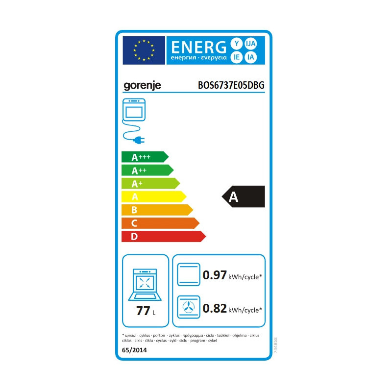 Orkaitės energijos sąnaudos (ventiliacija): 0,82 kWh
