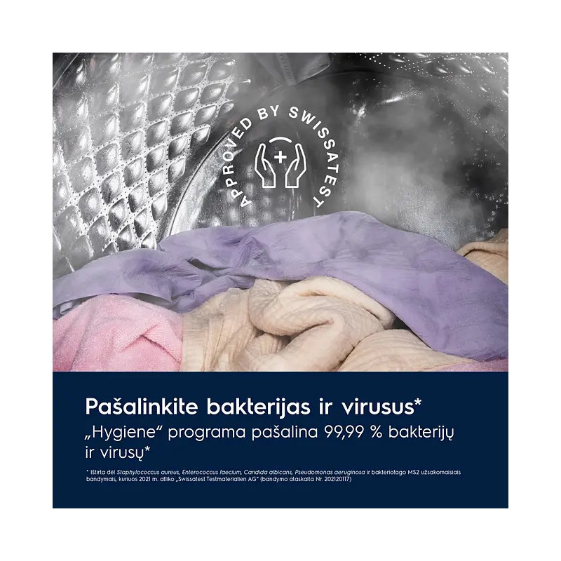 SensiCare System™ - technologija, parenkanti optimalų skalbimo ciklo laiką atsižvelgiant į įkrovos dydį bei optimalias vandens sąnaudas atsižvelgiant į audinio vandens sugertį greičiau nei per 1 minutę (skalbimo ciklas pritaikomas net prie mažų įkrovų: 1-2 Kg)