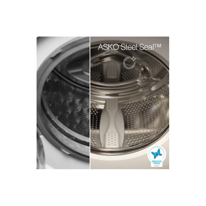 Tradiciniai guminiai sandarikliai kaupia purvą ir bakterijas, tačiau ASKO skalbimo mašinos su Steel Seal™ šią problemą pašalina. Pašalinus guminį sandariklį, užtikrinamas higieniškas skalbimo ciklas su 95 % mažesniu bakterijų dauginimusi, kaip įrodyta nepriklausomo instituto tyrimu*. Steel Seal™ taip pat padidina ilgaamžiškumą ir palengvina skalbinių pakrovimą bei iškrovimą.