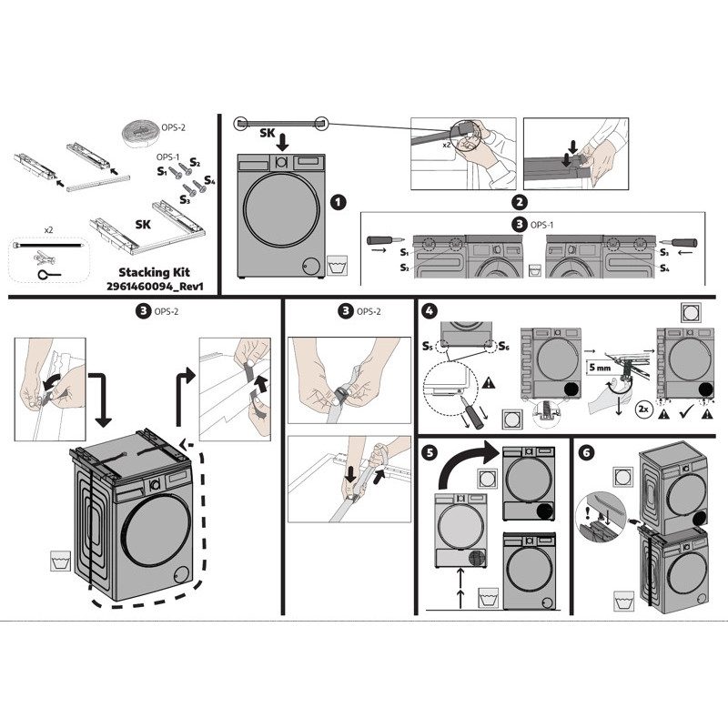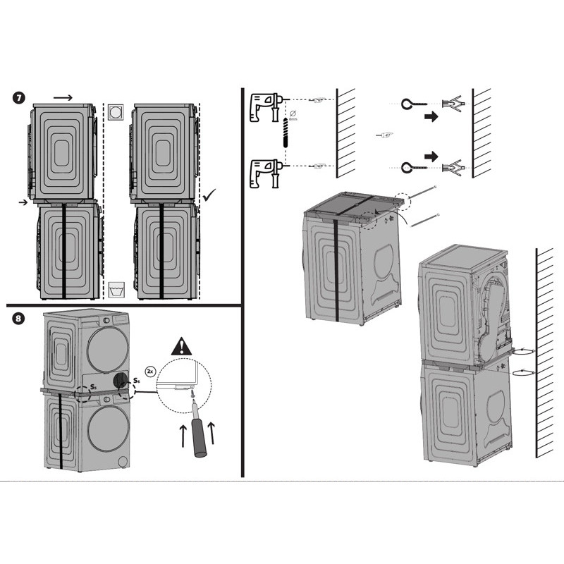 Montuojant prie skalbimo mašinos rėmelį tvirtinti galima 2 būdais (pasirinktinai, pav. apačioje):