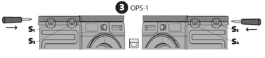 1) 4 x varžtais į skalbimo mašinos plastikinio stogo šoną;